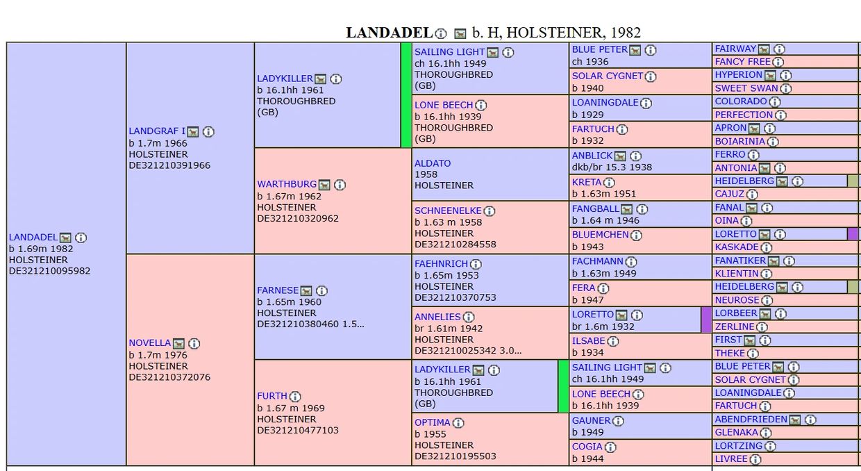 With hybrid breeds like warmbloods we can include further generations if there are multiples of an ancestor with some duplications in the engine room.