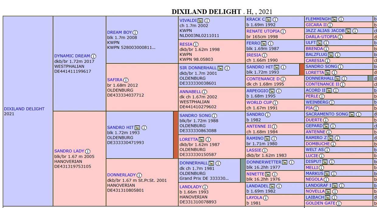 You can see both the sire and dam have a Sandro Hit x Donnerhall pattern, making Sir Donnerhall and Donnerlady effectively 3/4 siblings who have 75% of their bloodlines in common