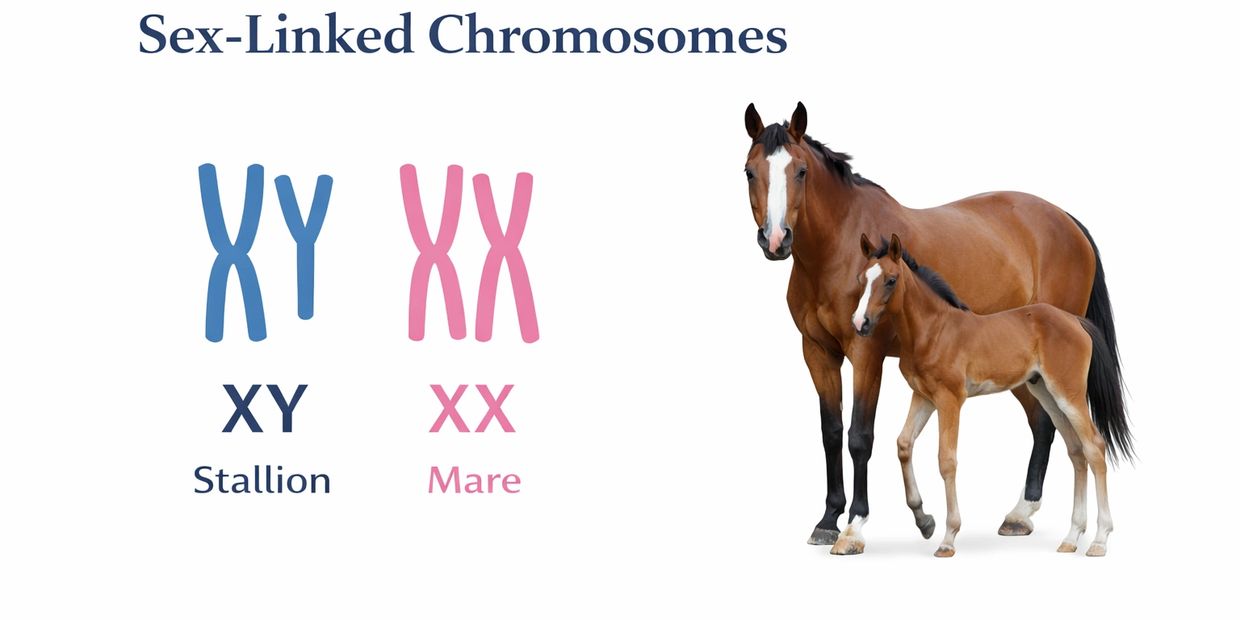 Mares have two X chromosomes – XX and stallions have XY.
